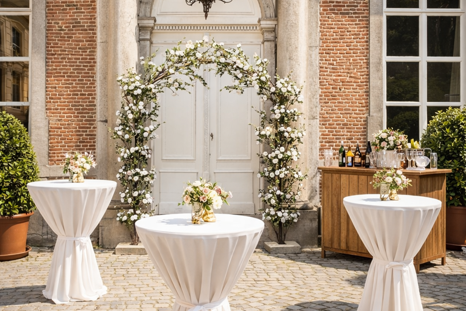 Geniet van jullie event! Wij zorgen voor het opzetten, afbreken en vervoeren van de bloemenboog /bloemenmuur. Uw bloemen worden gratis geleverd vanaf een bedrag van €250 excl btw binnen een straal van 50km.